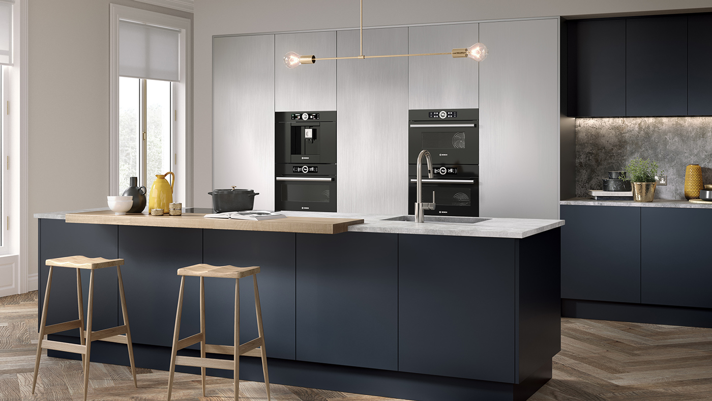 Bold finishes, clean lines, and cutting-edge features for a statement kitchen.